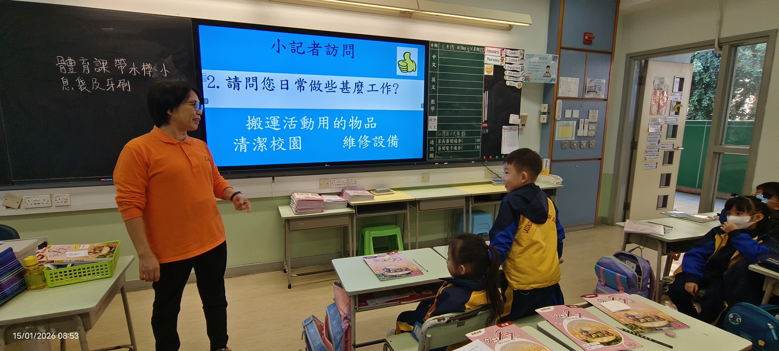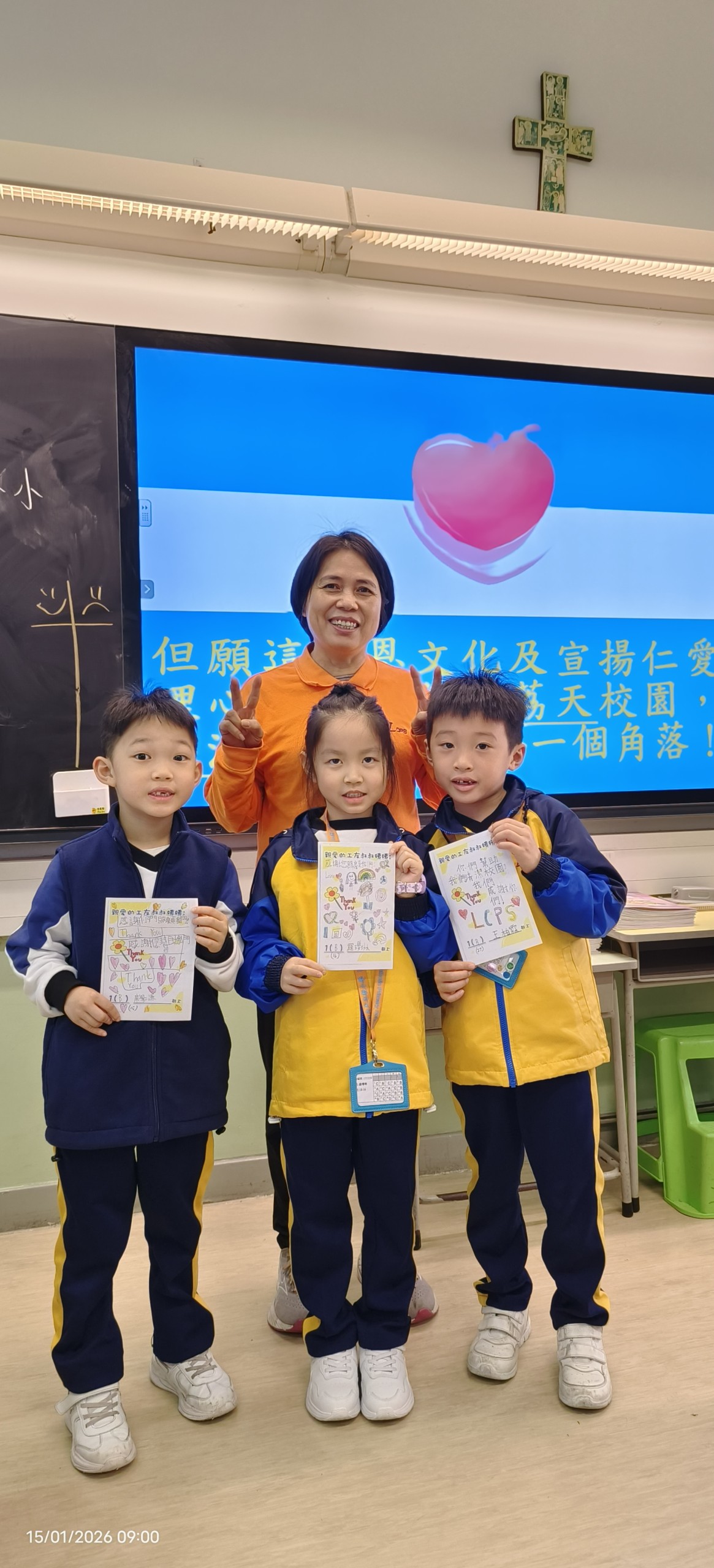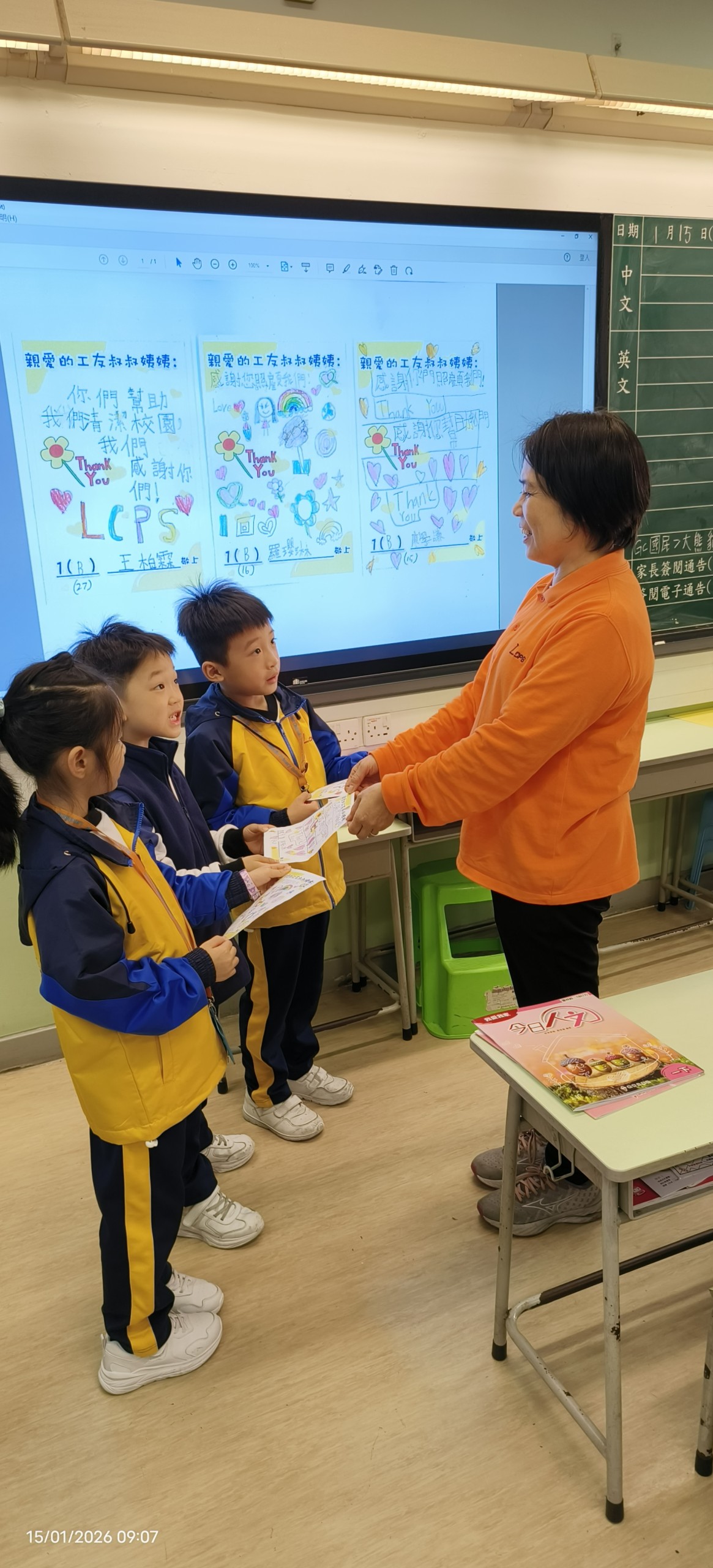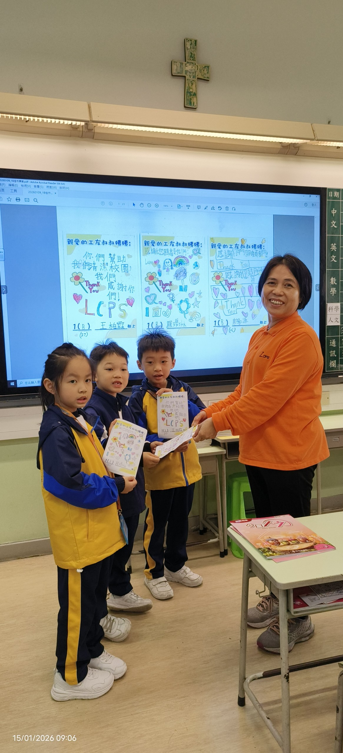 - 2026年1月期間,人文科為配合「我是小學生」單元學習,安排一年級學生撰寫感謝卡給學校工友叔叔阿姨。